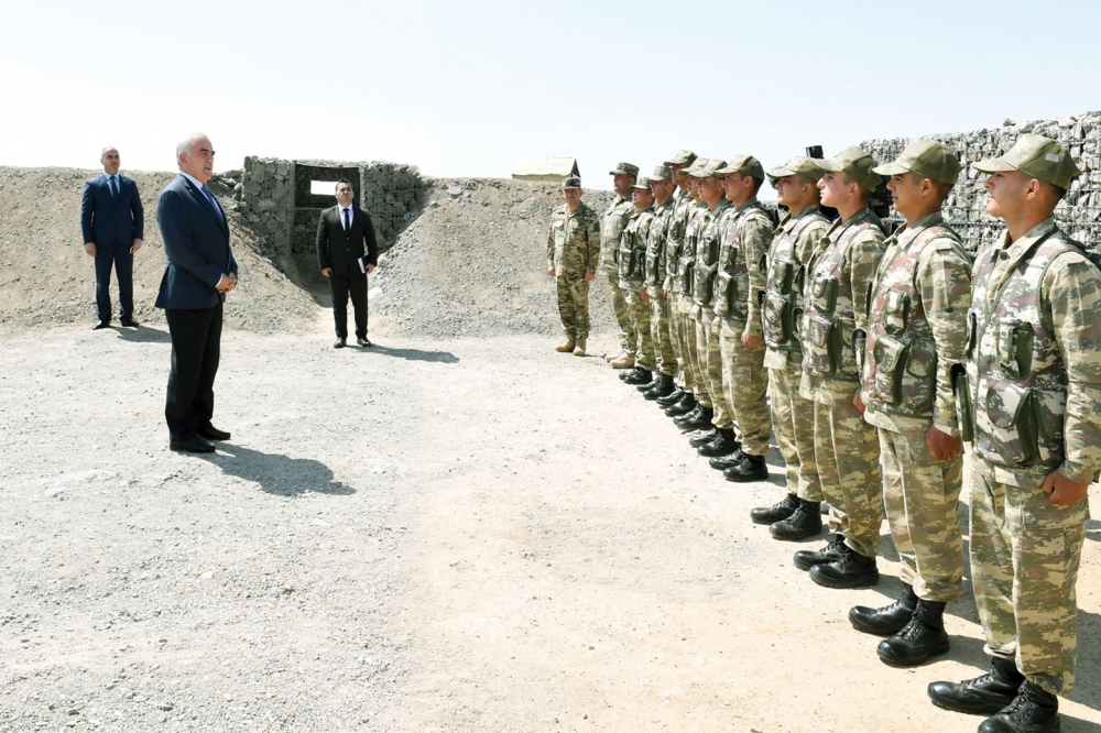 Nakhchivan Parliament's Speaker Vasif Talibov visits military units on August 18. Photo by Azerbaijan's Defence Ministry