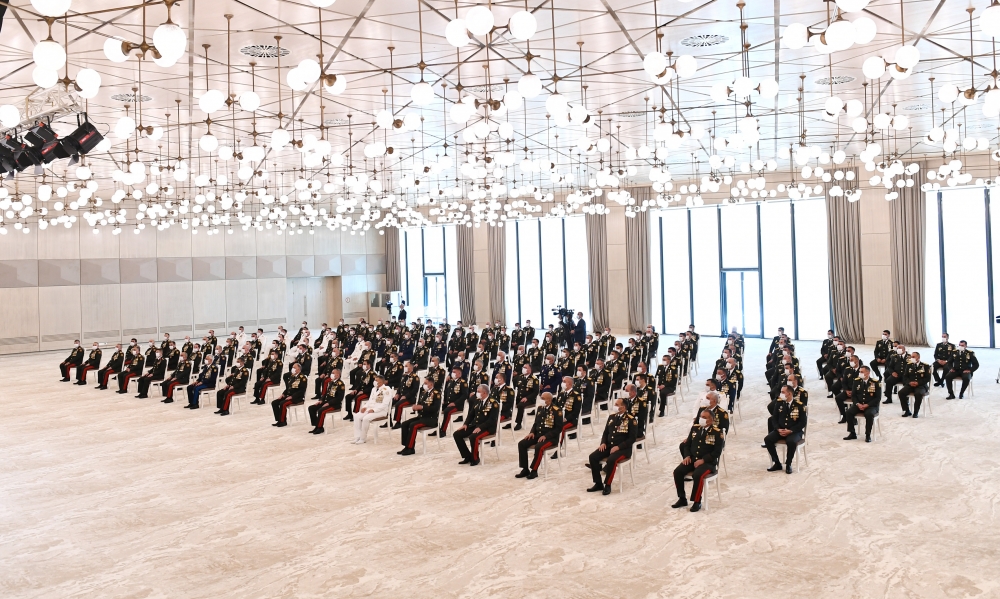 Addressing a group of military personnel in a ceremony held in Baku’s Gulustan palace, Aliyev reminded that Azerbaijan regained its territories in and around Nagorno-Karabakh during the war with Armenia in autumn 2020.